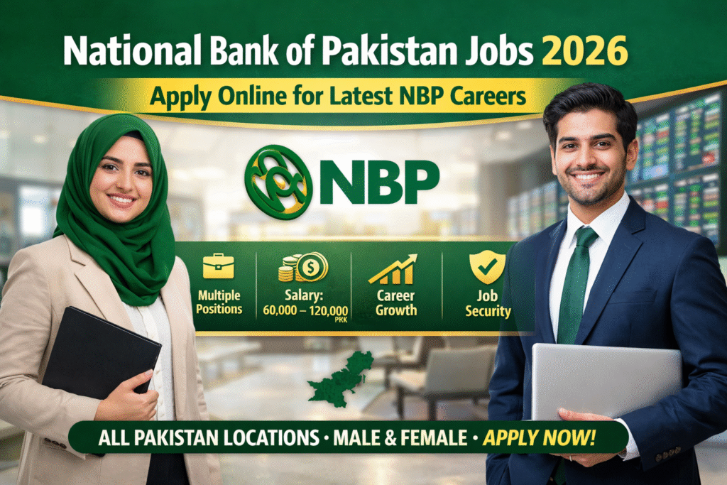 National Bank of Pakistan Jobs 2026 bring excellent career opportunities for talented, motivated, and qualified individuals who want to build a secure future in Pakistan’s largest government-owned commercial bank. These new NBP career openings are announced to strengthen banking operations across the country, offering competitive salaries, job security, professional growth, and long-term benefits. Whether you are a fresh graduate or an experienced professional, NBP provides a transparent recruitment system, modern working environment, and equal employment opportunities for both men and women across Pakistan.
